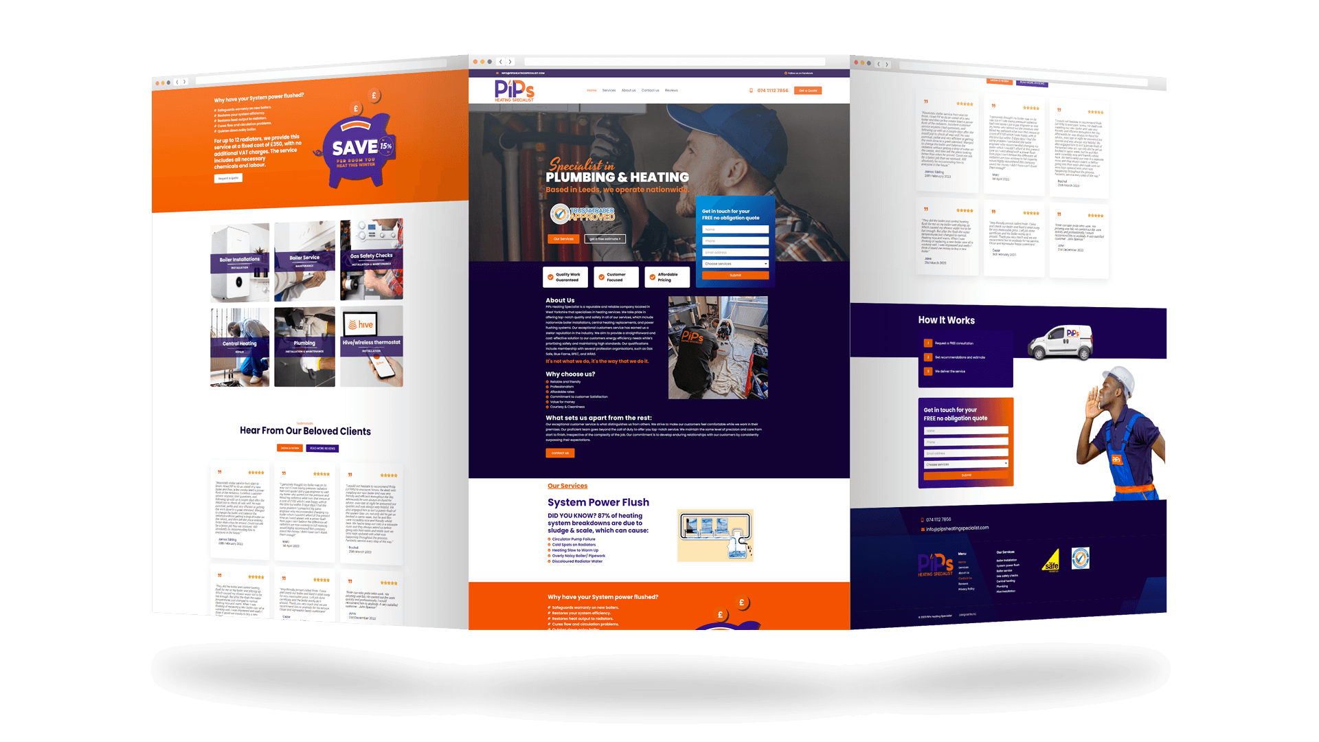 Pips Heating Specialist required a website link to effectively launch their Facebook ads and redirect traffic to a designated landing page. This landing page was thoughtfully designed with a concise headline, comprehensive company information, and an overview of their services along with engaging images. It was crucial to highlight Pips Heating Specialist's power flush service in a compelling manner to attract and captivate potential customers. To ensure seamless communication, contact forms were incorporated into the landing page for customers to easily request services. Undoubtedly, these contact forms play a pivotal role in any webpage as they enable customers to reach out and engage with the services provided. In addition, to reinforce the credibility of Pips Heating Specialist, we included links to their registered online profiles.